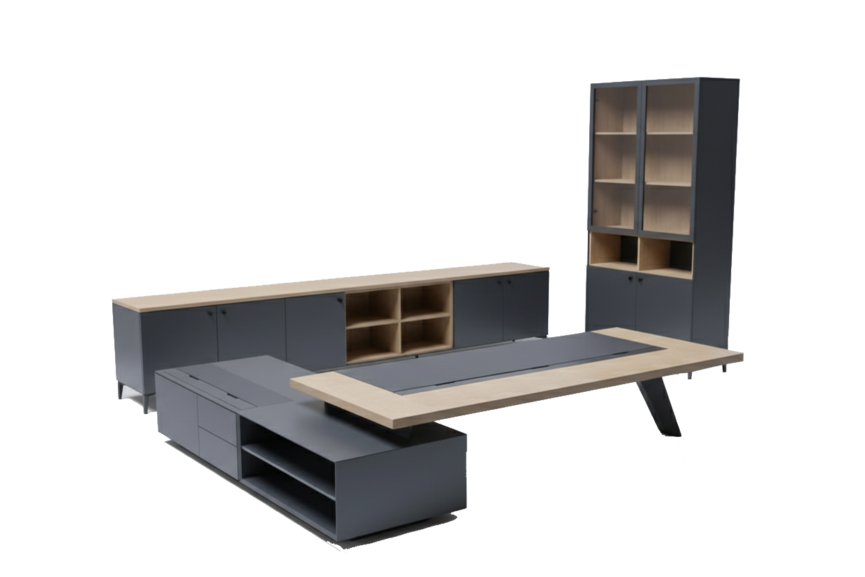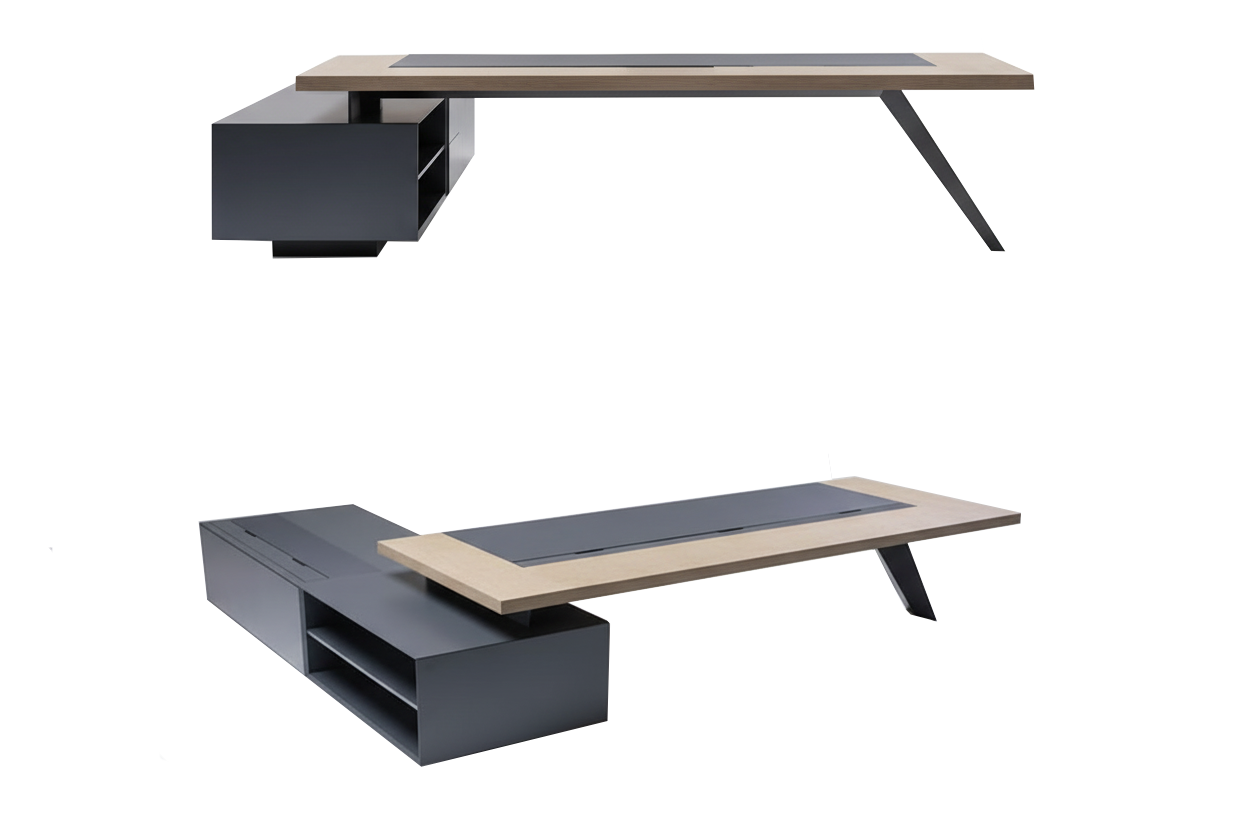 description A modern executive desk set made of high-quality MDF with a durable melamine finish.