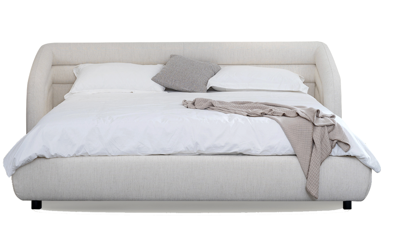 • Rolled Headboard Design: The headboard features rounded, slightly curved wings that seamlessly flow into the main body, creating an enveloping, cocoon-like appearance. It has subtle horizontal channel tufting or stitching, adding visual interest without being overly busy.